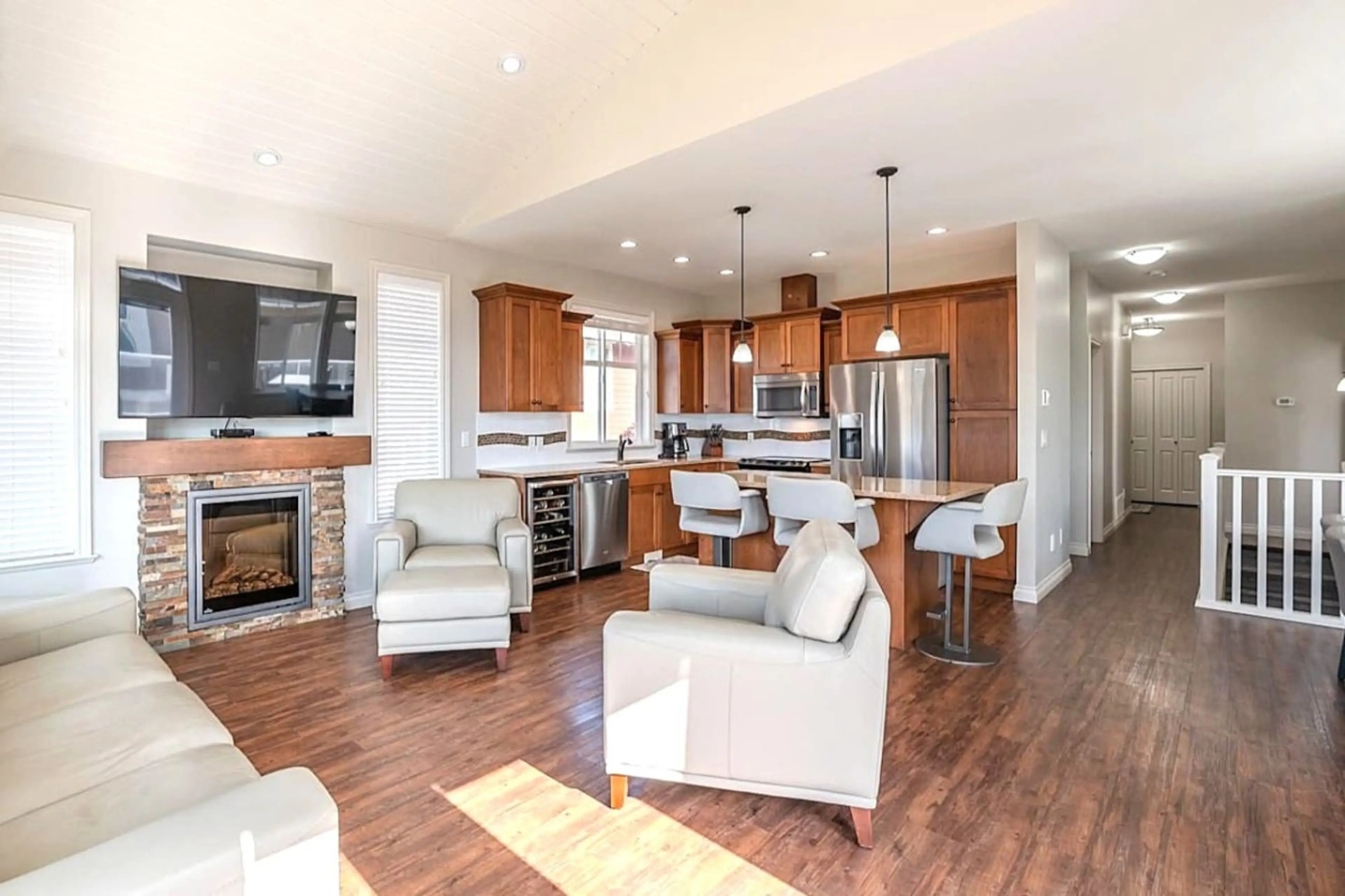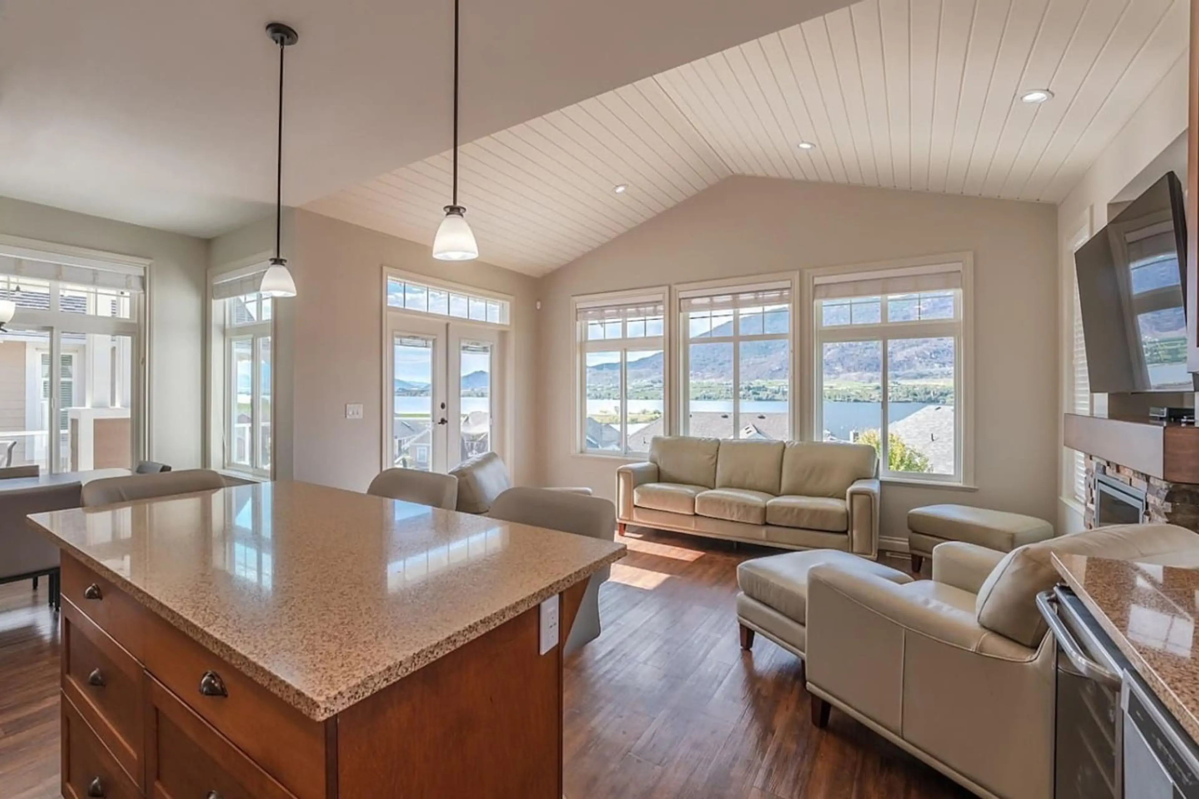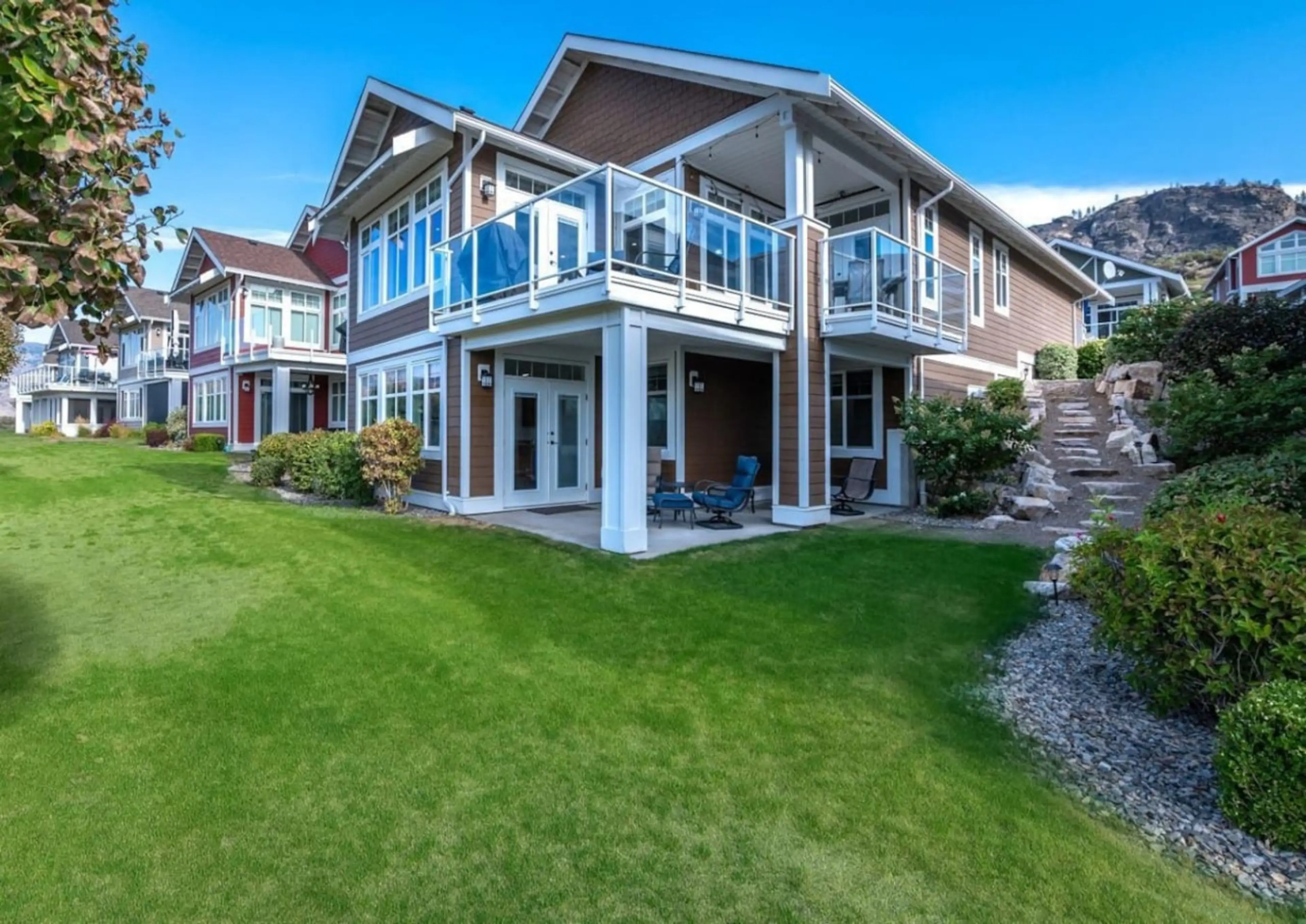 Merlot by the Lake Cottage is a 5 bedroom, 4 bathroom property with stunning views of the lake, mountains, vineyards and desert from the decks. This is a 2 story home with 2 decks. Luxurious high end furniture and plenty of room for indoor and outdoor living. Guests have access to the community po...